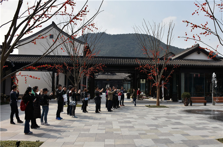 22日下午,考察團走進綠城桃李春風小鎮。剛一下車,大家就被小鎮精致而舒朗的中式園林景觀所吸引,紛紛拿出手機拍照。項目雖剛建成不久,但開花植物豐富,搭配合理,在大面積的水景映襯下,已讓人感受到“桃李春風一杯酒”的醉人韻味,考察團對此一致好評。