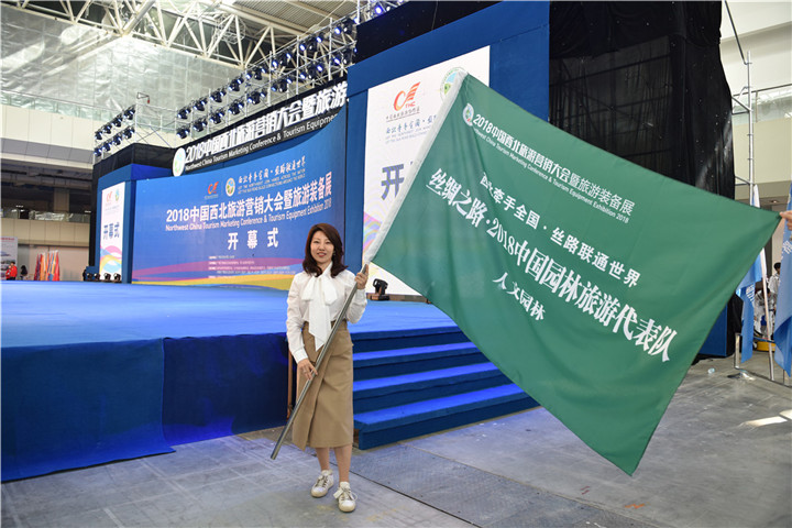 4月13日上午,2018中國西北旅游營銷大會(huì)暨旅游裝備展在銀川國際會(huì)展中心盛大開幕。浙江人文園林股份有限公司赴會(huì)參展,人文園林副總裁韓瑤代表公司執(zhí)旗參加開幕式。