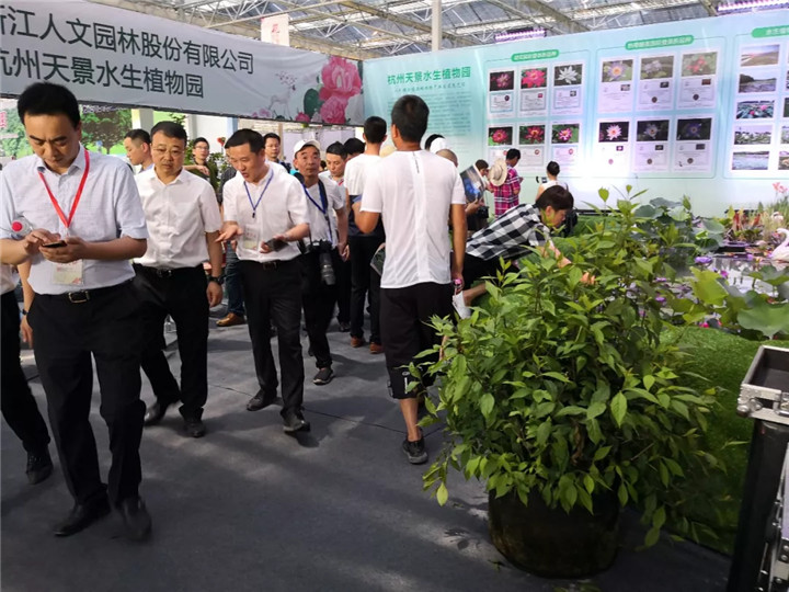 省政協副主席周國輝,省林業廳廳長林云舉,溫州市市長姚高員等一行參觀了我司展區,聽取了荷花、睡蓮等水生植物在園林景觀、“五水共治”、濕地生態修復方面的應用介紹,當了解到我司在荷花、睡蓮新品種培育方面,尤其應用轉基因技術,選育耐寒型熱帶睡蓮成果時,周國輝副主席等給予了高度評價。當介紹到我司2017年登錄的睡蓮新品種“人文溫州”時,溫州市市長、市人大主任和市政協主席等領導表現出了極大的驚喜。