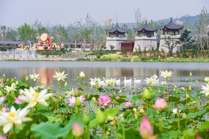 人文園林不僅重視荷花、睡蓮等水生植物的研發,更巧妙將其應用到園林景觀工程的營造中,給項目增色不少。其中,尤以陜西韓城國家文史公園為代表,園內共有610個荷花品種和112個睡蓮品種,其中包括引種雙色睡蓮品種“萬維莎”,路易斯安那鳶尾7個品種,以及其他水濕生植物113個品種。在此基礎上,更舉辦全國首屆睡蓮文化節,將睡蓮文化與韓城文化相結合,為來自全國各地的游客奉獻了一場長達近兩個月的美的盛宴。