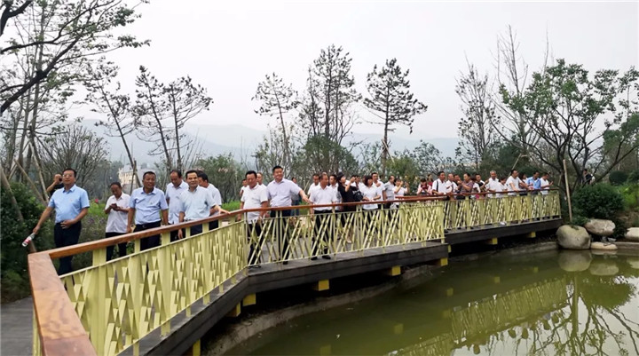 7月13日,寶雞市金臺區金陵鎮人大代表100余人,考察金陵河實景文化風景區項目,鎮長張斌為代表介紹項目營造特色。詩經文化風景區是浙江人文園林股份有限公司設計施工,現“玉·池”段已基本完工,項目的建設情況得到考察代表的充分認可。