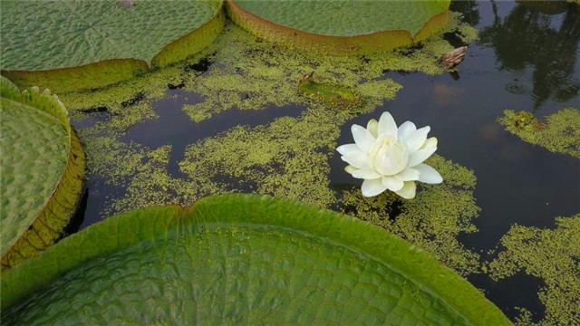 王蓮最奇特的是它的葉子,初生葉呈針狀,長至兩到三片時呈矛狀,四到五片時呈戟形,六到七片時完全展開,呈橢圓形至圓形,到十一片之后葉緣上翹呈盤狀,像圓盤浮在水面上,直徑可達2米以上。據測算,克魯茲王蓮葉片的浮力可達近300公斤!