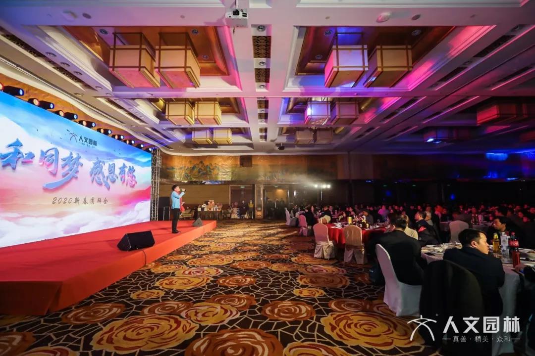 喜悅滿懷辭舊歲,憧憬在心迎新年。1月19日晚,人文園林“眾和同夢 感恩有您”2020年迎春晚會在海外海納川酒店隆重舉行。活動當晚,公司全體員工歡聚一堂,把酒言歡,展望美好明天,喜迎新春到來。
