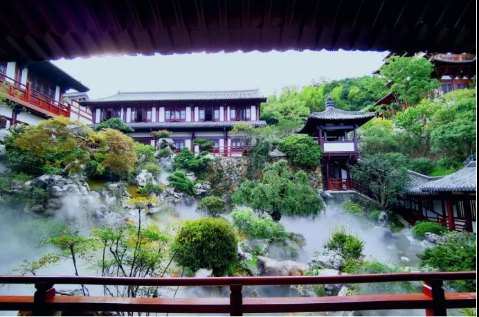 陳勝洪會(huì)長(zhǎng)帶領(lǐng)大家重點(diǎn)參觀考察寺院內(nèi)由浙江人文園林股份有限公司打造的天下徑山苑項(xiàng)目。項(xiàng)目總體設(shè)計(jì)構(gòu)思是:以沈周的《廬山高圖》為摹本,以“天下徑山”為主題,以山-水-林-云構(gòu)成的立體山水庭院。根據(jù)其功能特點(diǎn)定位其文化風(fēng)格為“禪房花木深”,根據(jù)其空間特點(diǎn)定位其布局為“高山流水”的山水畫園。集名山之最,形成雙峰對(duì)峙、奇峰怪石、絕壁千仞、峽谷縱橫、溶洞溪瀑、霧淞花海的園林布局和景觀特色。