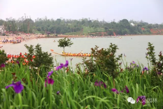 當天恰逢青嵐湖森林公園建成后的第一個端午時節,進賢縣沿湖村莊居民在月亮灣景區舉行了傳統習俗活動——賽龍舟。鑼鼓喧天,鞭炮齊鳴是龍船下水之前的儀式,吸引了當地居民和游客前來觀看。