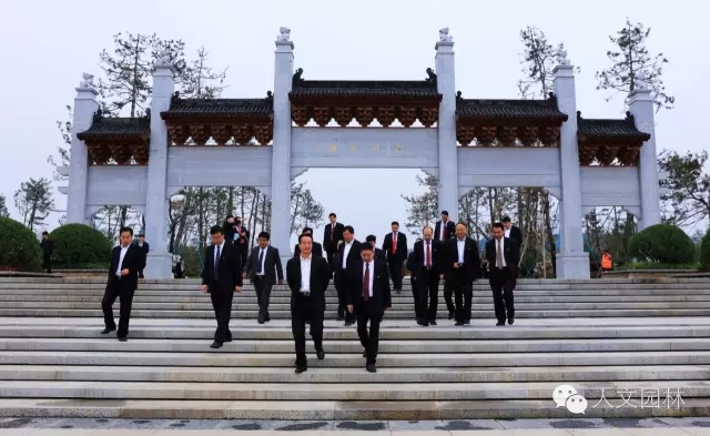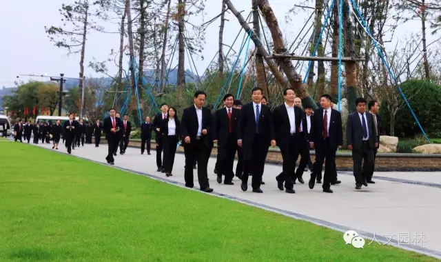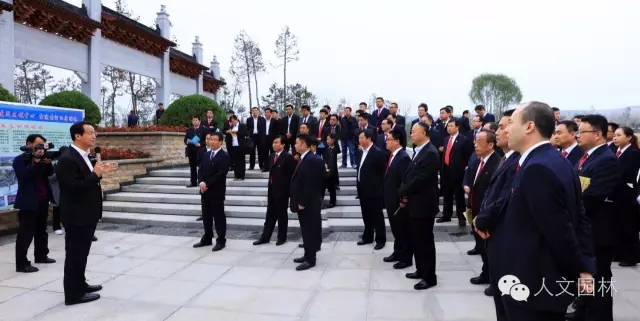 2016年10月20日,陜西省委常委、延安市委書記徐新榮(右三)帶領延安市各區縣黨政主要負責同志和市級有關部門主要負責同志到國家文史公園參觀考察,渭南市委副書記王愛民,市委秘書長楊林和韓城市委書記、市人大常委會主任李智遠(左三),市委副書記、市人大黨組書記冀會康(左二),市政協黨組成員、副主席張宏哲,市旅委主任雷勤(右二)等韓城市領導,以及浙江人文園林有限公司副總經理洪利民(左一)全程陪同。