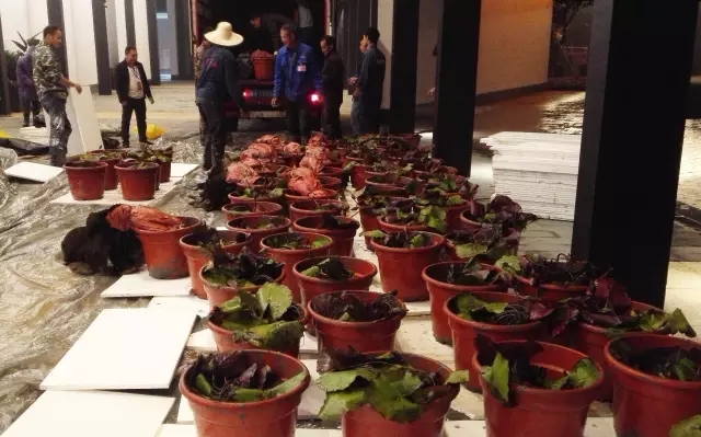 場(chǎng)館中心水景水生植物景觀方案是由杭州人文園林設(shè)計(jì)有限公司設(shè)計(jì),并選用杭州天景水生植物園提供的ploi fai、terri dunn等相對(duì)耐寒的熱帶睡蓮品種和克魯茲王蓮,從起苗、運(yùn)輸?shù)皆灾病B(yǎng)護(hù),無不細(xì)致入微。