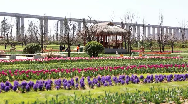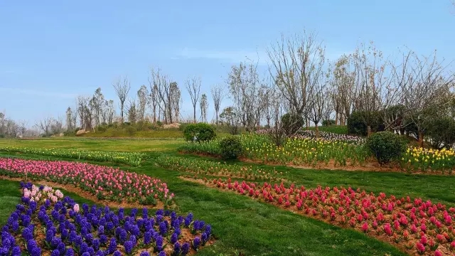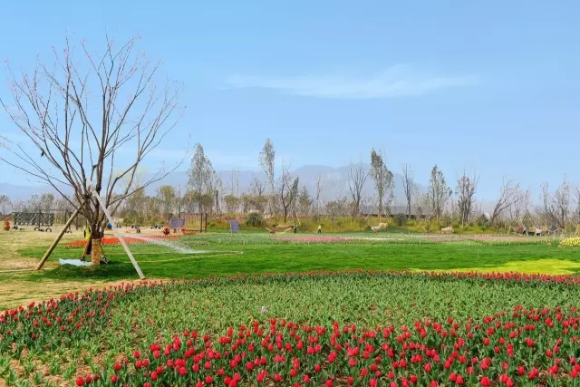 放眼望去成片的郁金香吐露著芬芳,色彩十分絢爛,有的含苞待放,有的花開正艷,五彩繽紛的花朵讓人徜徉其間流連忘返。